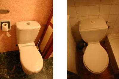 First off... Yes I took pictures of two toilets. These two beauties come from Bologna, Italy and came from two hotels. The interesting thing is that beyond the obvious interaction model they have similar looking but exactly opposite flushing mechanisms.