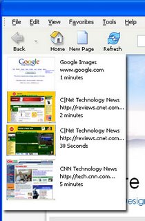 I was playing around with a couple of FireFox extentions that add some interesting thumbnailing capabilities to the browser and it reminded me of a sketch I made of adding rich thumbnail capabilities into the browser back button.